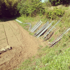 クソ重た…ハウスをバラして80キロぐらいの根石14個、2回に分けて運びます。 #作業場