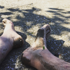 さすがにちょっとダレた。熱中症の予感がしたので木陰で一休み。 #米