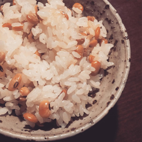 豆ごはん作ってみたけどかなりいける。米2合に対して一つかみ(30-40g)の乾燥大豆を洗って少し乾煎り。酒大さじ2、塩小さじ1を加えて2合分の水の量にしたら炒った大豆を投入して軽く混ぜる。最後に5センチ角のだし昆布を入れて炊飯器で炊くだけ。 #ごはん豆