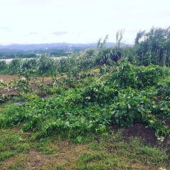 台風の直撃は免れそうなものの、やはり雨が結構降ってきました。二十日大根も耐えてます
