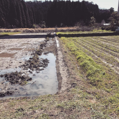 代掻き完了。田んぼに水が張られてカエルの鳴き声が聞こえるようになると「今年もはじまるんだな」と実感。6回目の稲、がんばります。 #米
