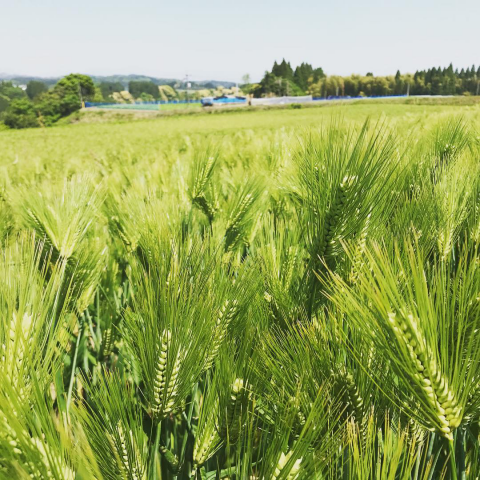 小麦が少し色づきはじめた朝。今日からまた東京です。