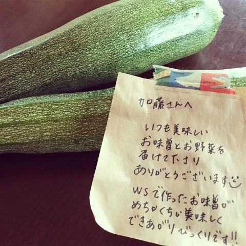 急に採れ始めた夏野菜たち。お料理とお裾分けがこれから大変になりそう。今月のみそみそ便のオマケはズッキーニです!