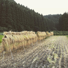 昨日は晴れのはずが午前中雨で脱穀できず。家族のいない今日、一人で脱穀決行です。15時までには終わらせたいところ。