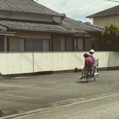 歳の頃はおそらく70歳前後ですが、時々こうして荷台に奥さんを乗せ、ずいぶん遠くまで出かけています。