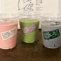 これまでいちご甘酒シェイクのみでしたが、先日から抹茶と黒胡麻が加わりました。
