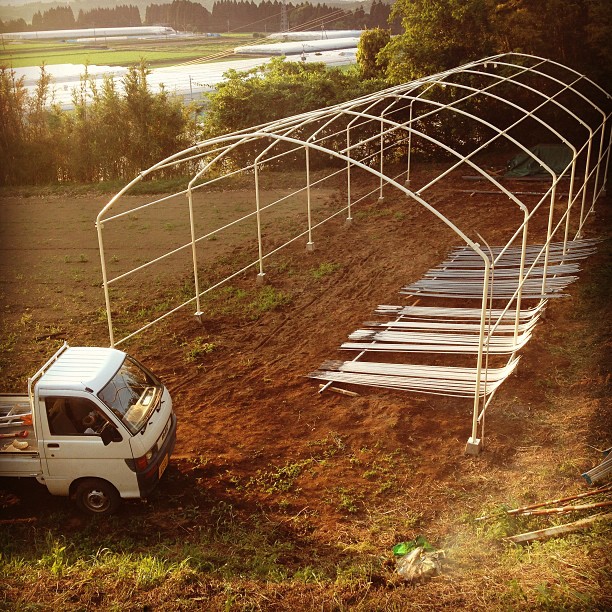 ハウス建て込み6日目。色塗りが時間かかりすぎ…