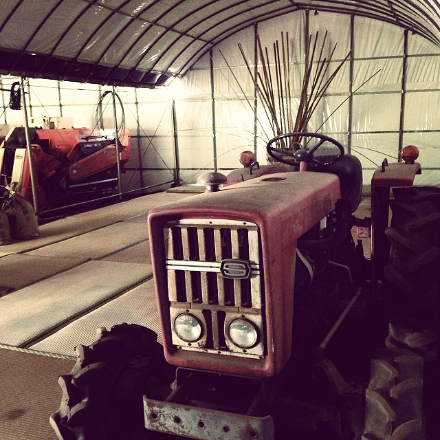 いろいろあってようやく移動できた同級生のトラクター。こちらで油臭いオブジェになっていただきます。