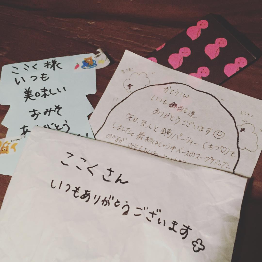 昨日も配達でジュースやケーキやこんな沢山の気持ちをいただきました。いつもいつも本当に幸せな気分です。