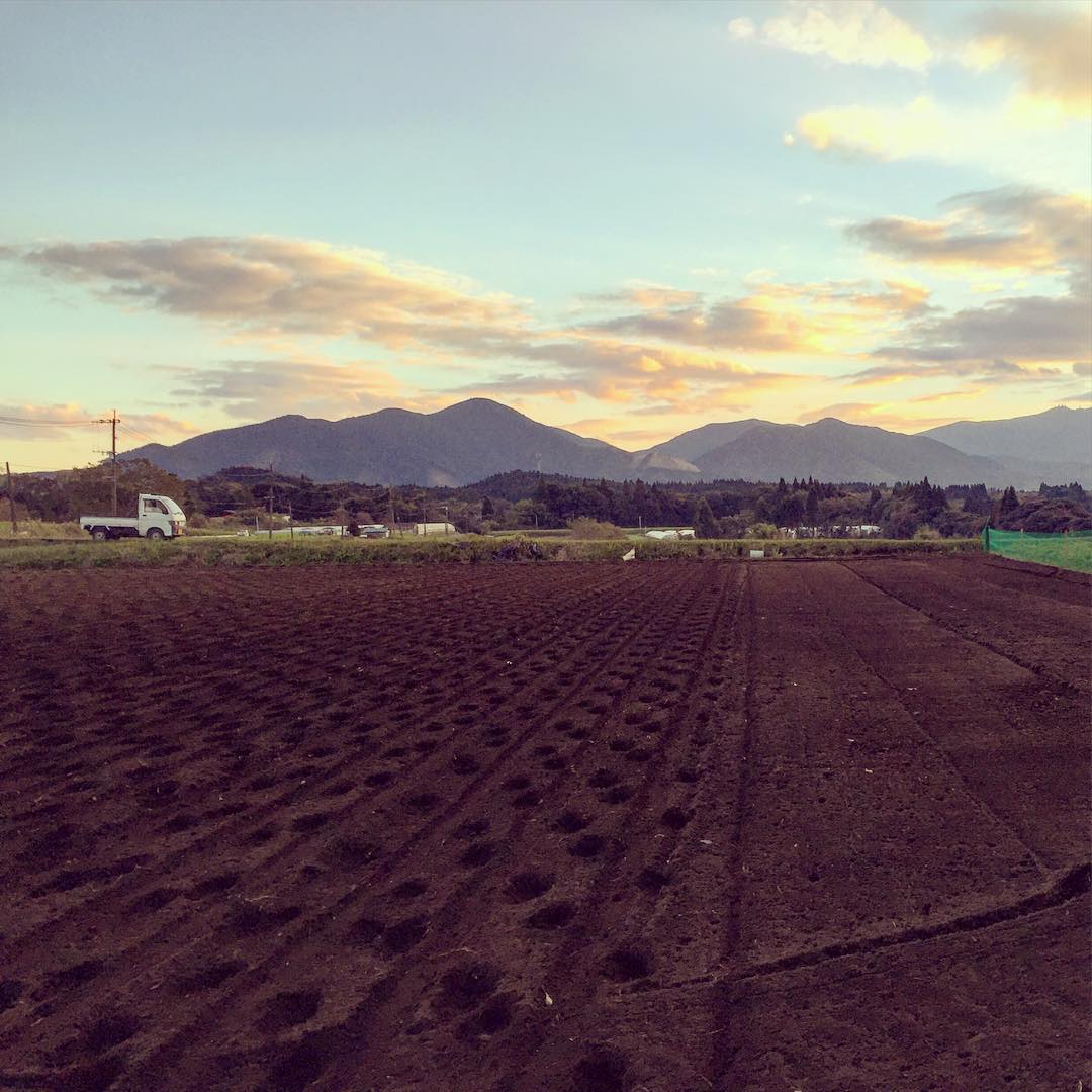 日が沈んでしばらくした頃に終わりました。去年は2日かかってたのでかなり体力ついたってことかな。今年はあと一枚、全部で約5反麦をまきます。 #麦
