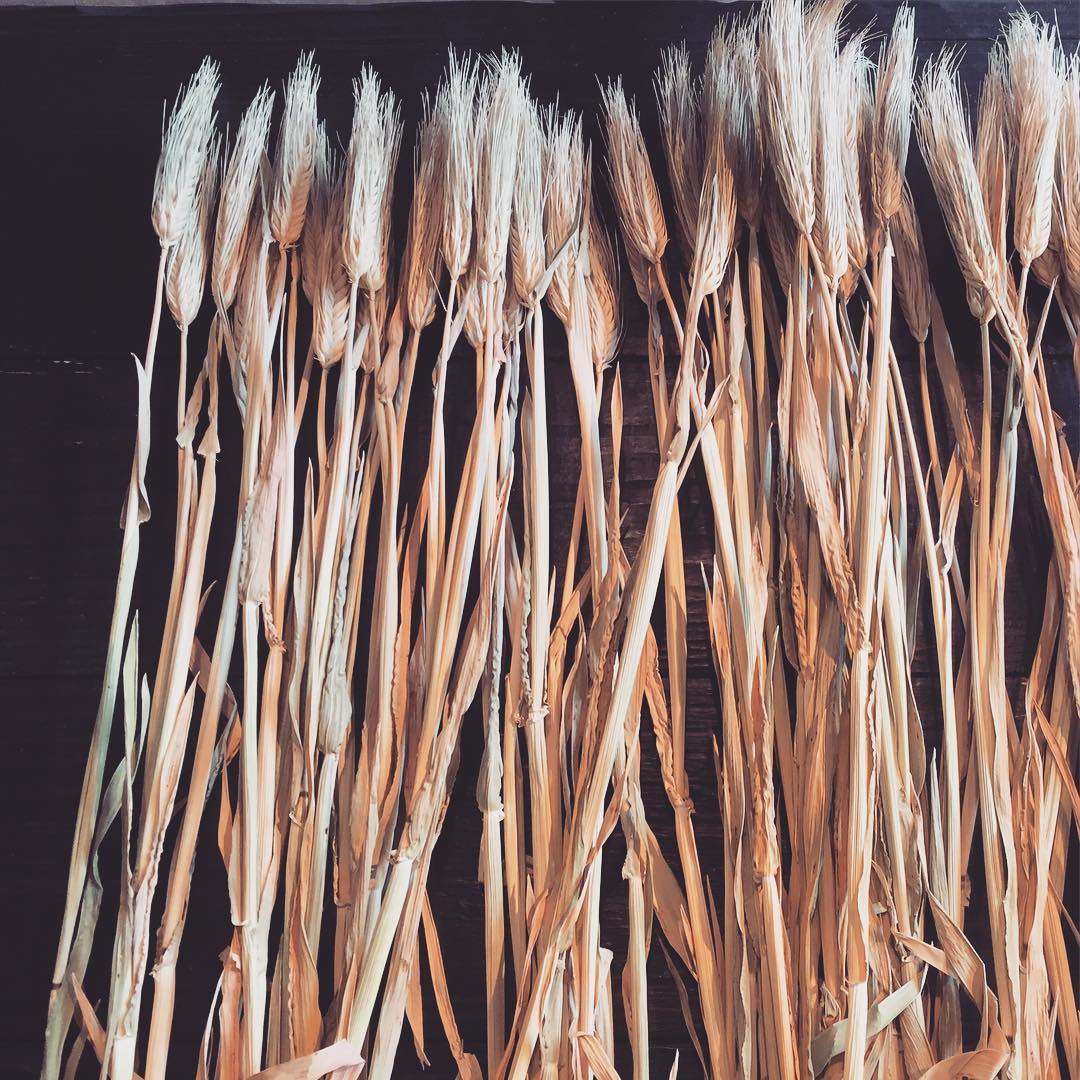 ダークブラウンのテーブルに置いただけなのに、なぜかときめく麦の穂。