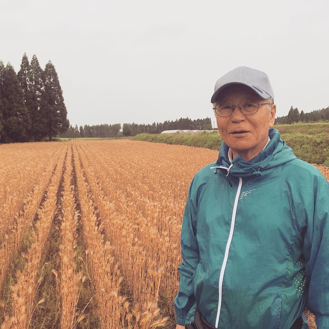 農学博士の足立先生が雨の麦畑に遊びに来てくださいました。