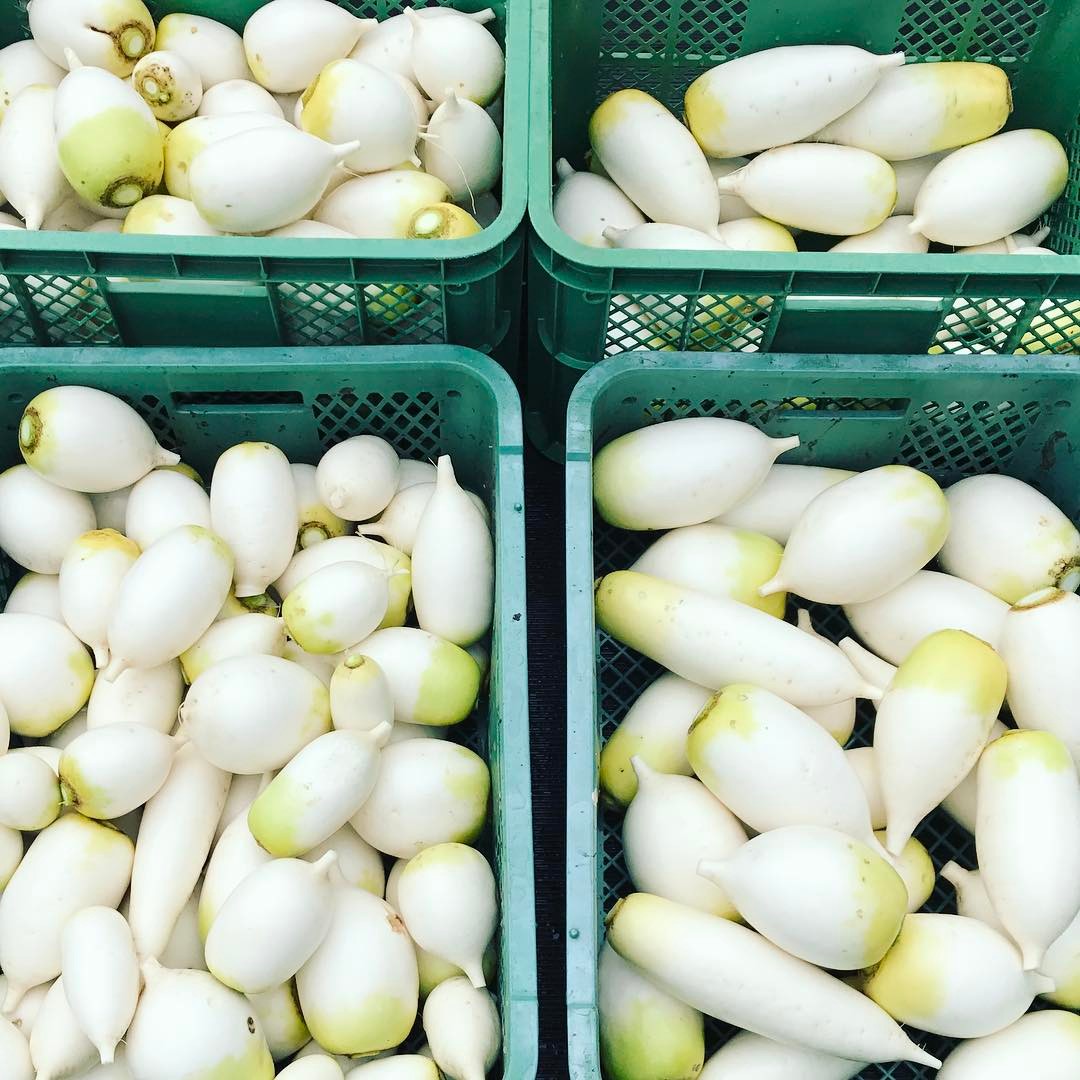 今日も米良大根さまはご覧のように個性に溢れかえっております。右が明日みそみそ便でお配りするもの、左が行き先がないものの漬物に最適なちびっ子達。欲しい人いるかな? #米良ダイコン #みそみそ便 #自然栽培 #多様性