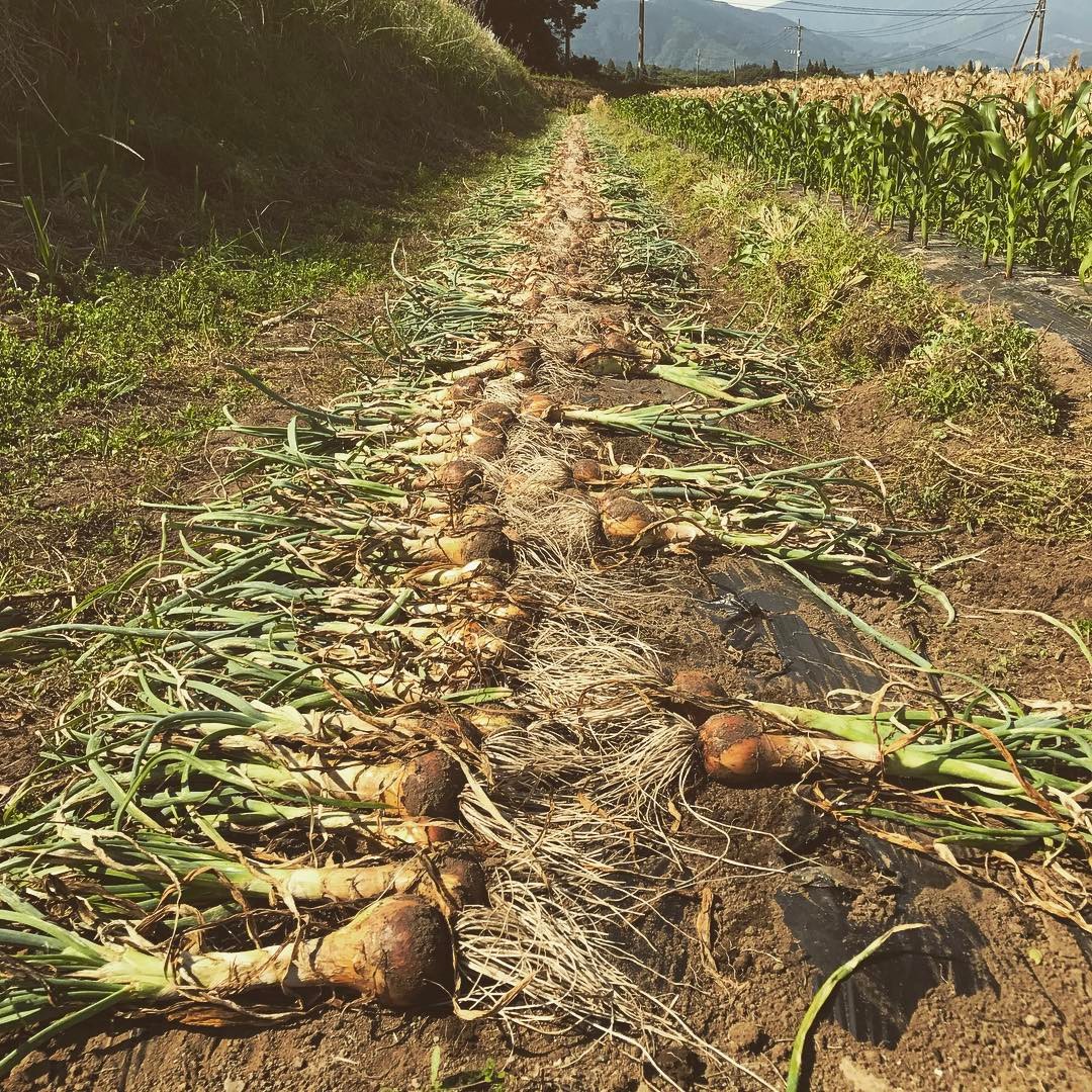 玉ねぎもう倒れない様子なので全部引き抜き。天気が良くて幸いです。ここは肥えがたくさん入ってるから日当たり悪くても育つかと思いきや、やっぱり甘かった。予定してた3割ぐらいしかとれなかったです。。 #タマネギ