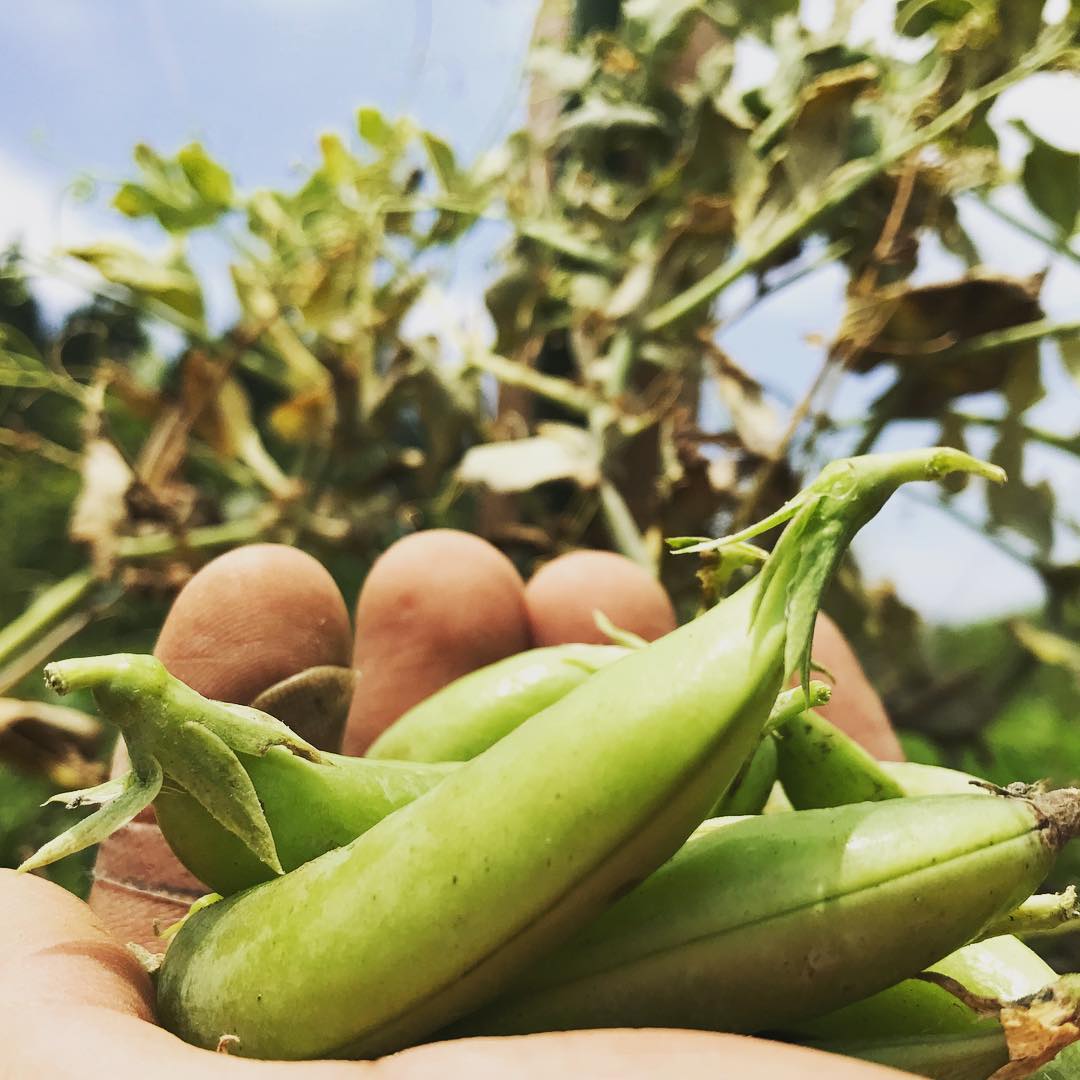 半分枯れながらも、まだ健気に鞘をつけていたスナップエンドウ。最後の収穫をして片付けました。