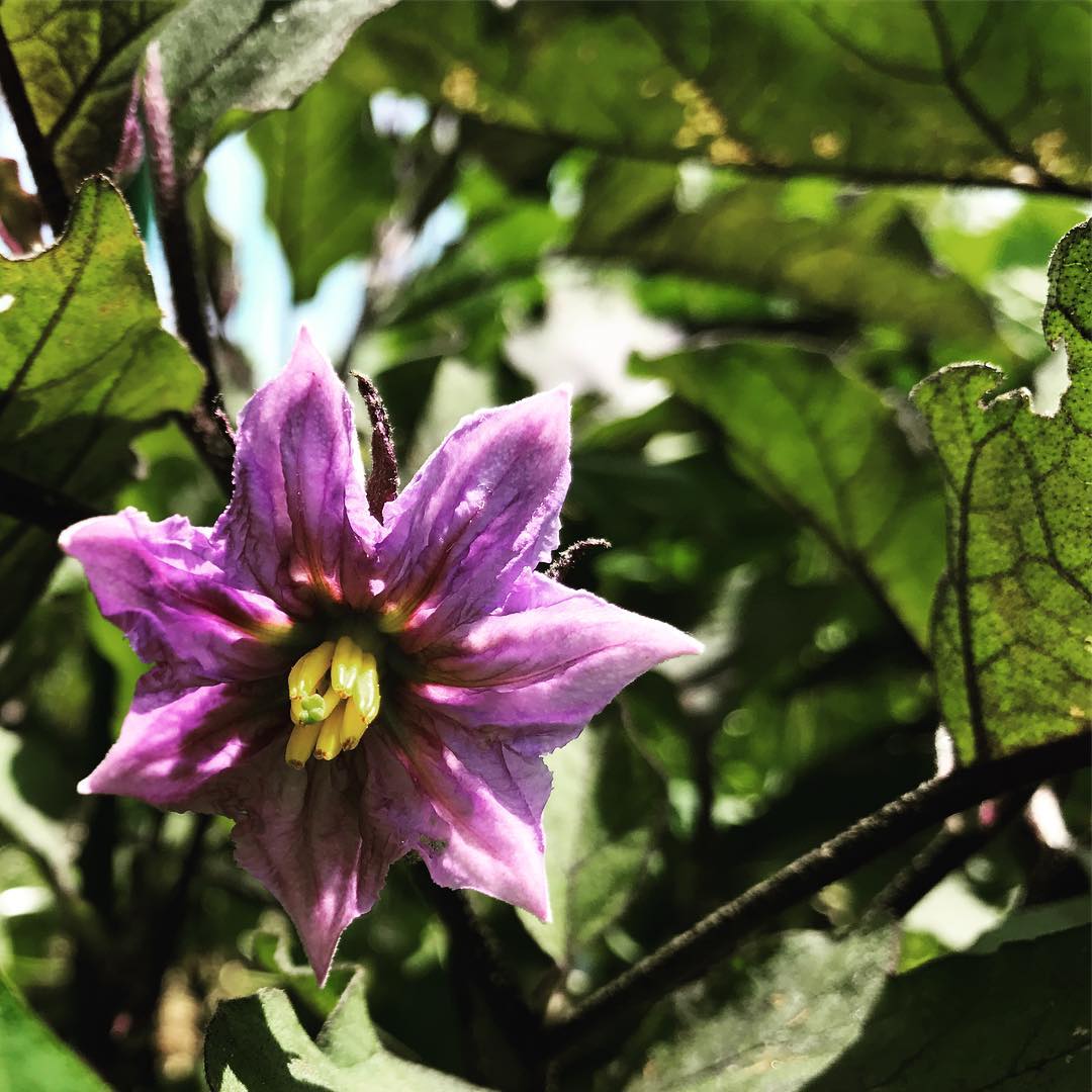 茄子の花はいつも下を向いているけれど、こうしてみると情熱的