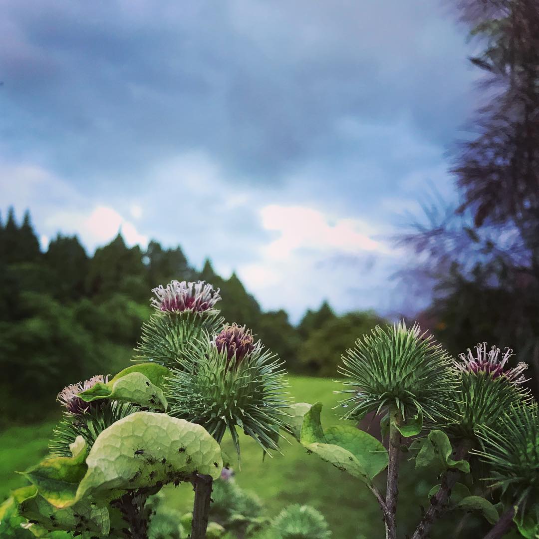 種をまいてから2年、ついにゴボウの花が咲きました。トゲトゲスゴイ。花言葉は「さわらないで」「いじめないで」だそうです。
