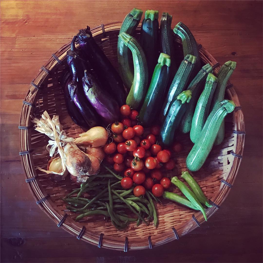 本日の収穫を義祖母からいただいた竹籠に並べてみました。こういうしっかりした作りの竹籠はなかなかないので大切にしなくちゃ。