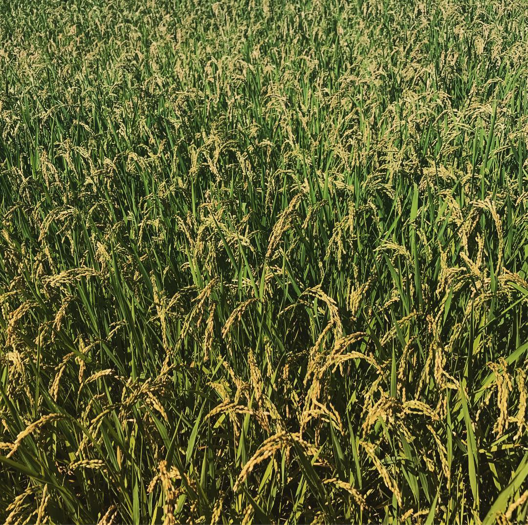 だいぶ穂が黄色くなってきました。そろそろ収穫に向けてみんなソワソワです。今年は一度もバルブをいじらず、全て雨水だけ。手作業で苦労した畦塗りのおかげです。 #米