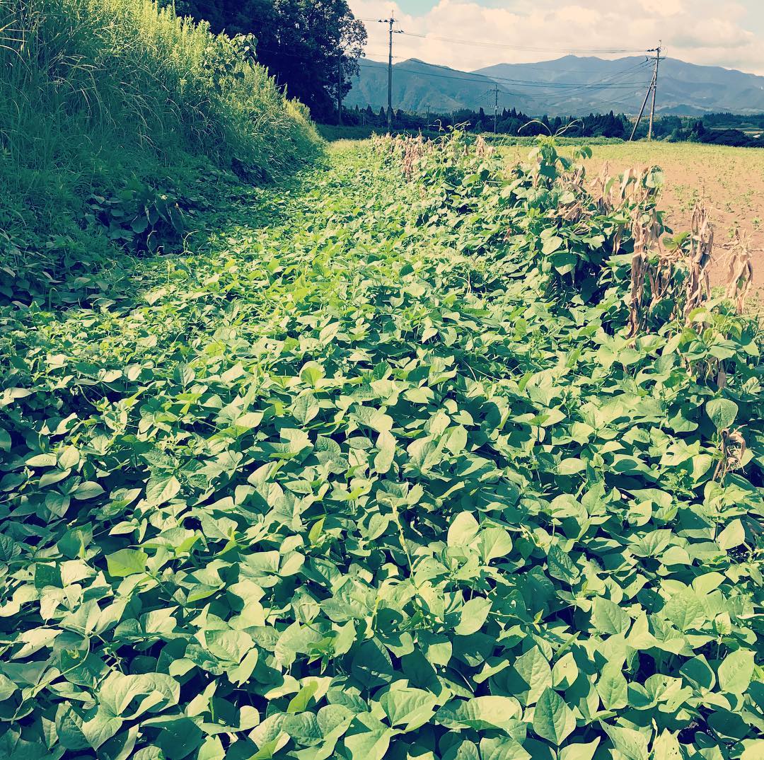 玉ねぎのマルチをそのままに、トウモロコシと法面の間に在来の地ばい小豆。これ最強の組み合わせ也。