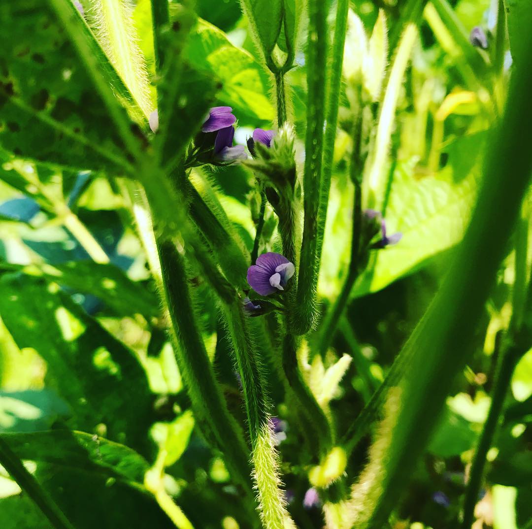 この大豆はリビングマルチのために4月に蒔いた大豆。リビングマルチとは、畝と畝の間に敢えて草を生やし、影をつくることで草を生えなくするというものです。