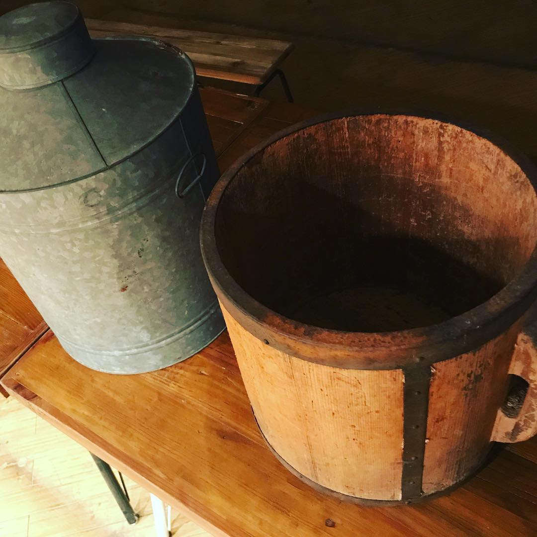 お向かいのちーちゃんに一斗枡とお茶缶もらったよ。ちーちゃんは今はなき精米所の娘です。