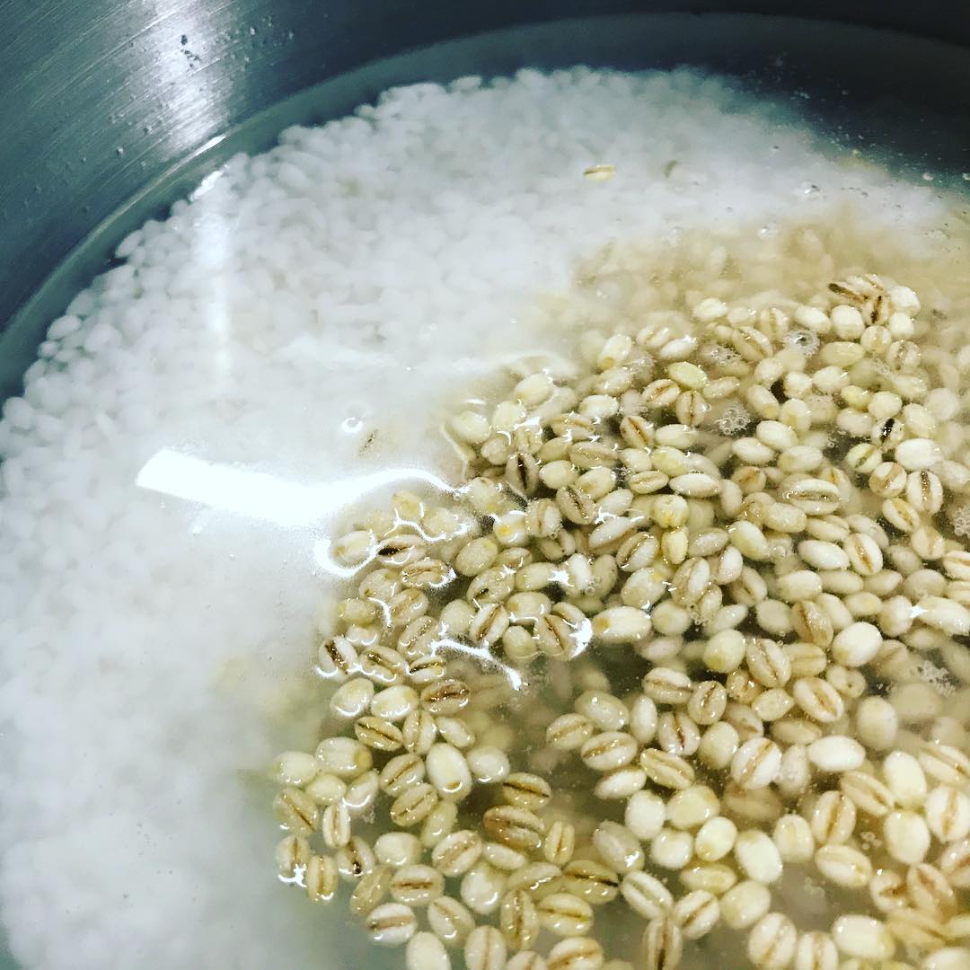 ごはん麦、うちは炊く前に入れる派です。麦は米よりも吸水が早いので、このぐらいの方がプチプチ美味しくたべれますよ。