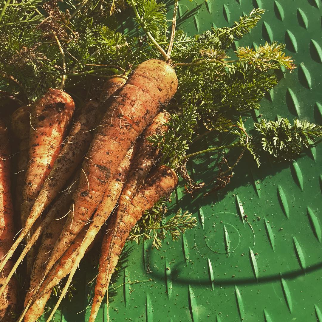 初めての自家採種人参。寒さの中頑張ってくれたけど、いい加減収穫してあげました。