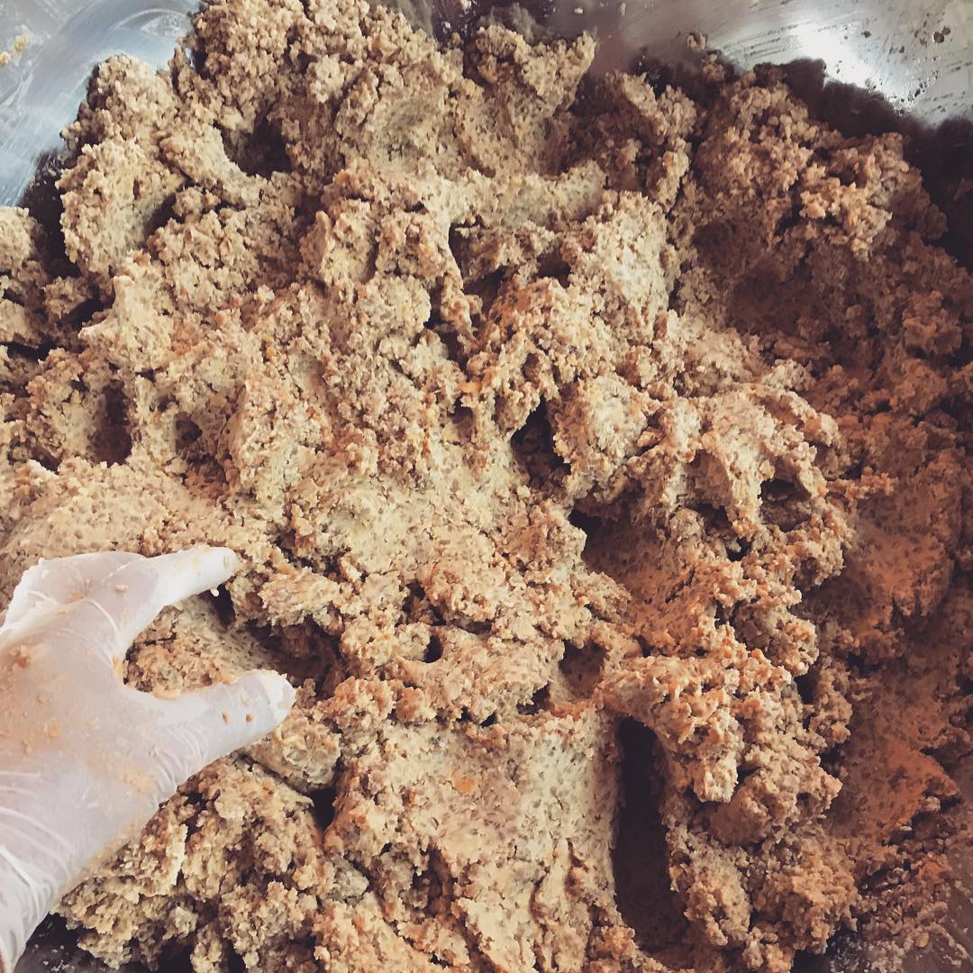 雨の日を狙って、本日も味噌仕込みDAY。この段階になると手が離せなくなるので写真とったことなかった。大豆を潰すのは機械を使いますが、捏ねるのは変わらず手です。写真は12.5キロの味噌。よく捏ねて樽に詰めていく作業x4です。