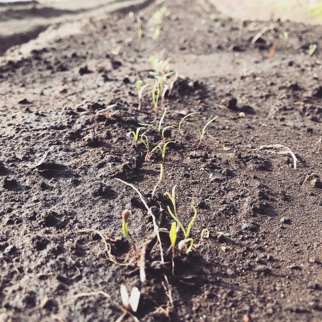 毎日の水やりの賜物。ようやく人参の芽が出揃ってきました。しつこいようだけど、雨降ってお願い。