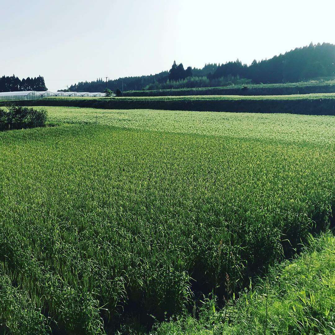 小麦が少し色づきはじめた朝。今日からまた東京です。