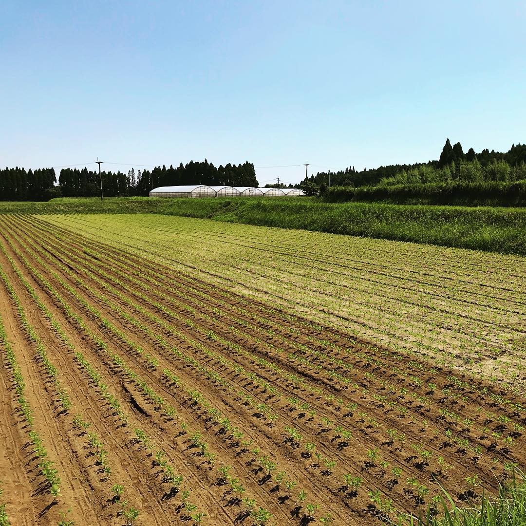 今日も宮崎の日差しは厳しくて。大豆の中耕作業、午前中には終わらせたいところ。午後は明日の種まきの準備に。