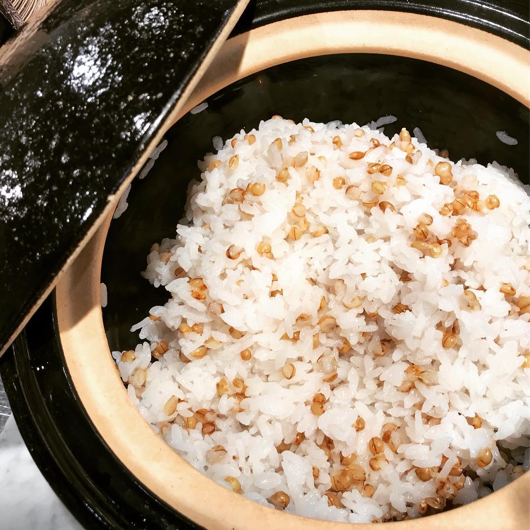 麦茶の出がらし炊きごはん、きょうははんなりお豆はん、プチプチ麦ごはん、そしてお店の方が考えてくれたピーナッツバターとお味噌を和えた味噌がのっているおやき。どれも本当に美味しかった!ピーナッツバターの組み合わせ、豆の味が活きていて感動です。