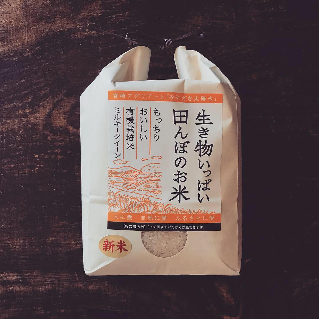 種もみを海水で消毒するところから苗づくりまで、全て自分のところで一貫して行なっているお米。生き物がいっぱいの田んぼで育った豊かなお米をぜひどうぞ。