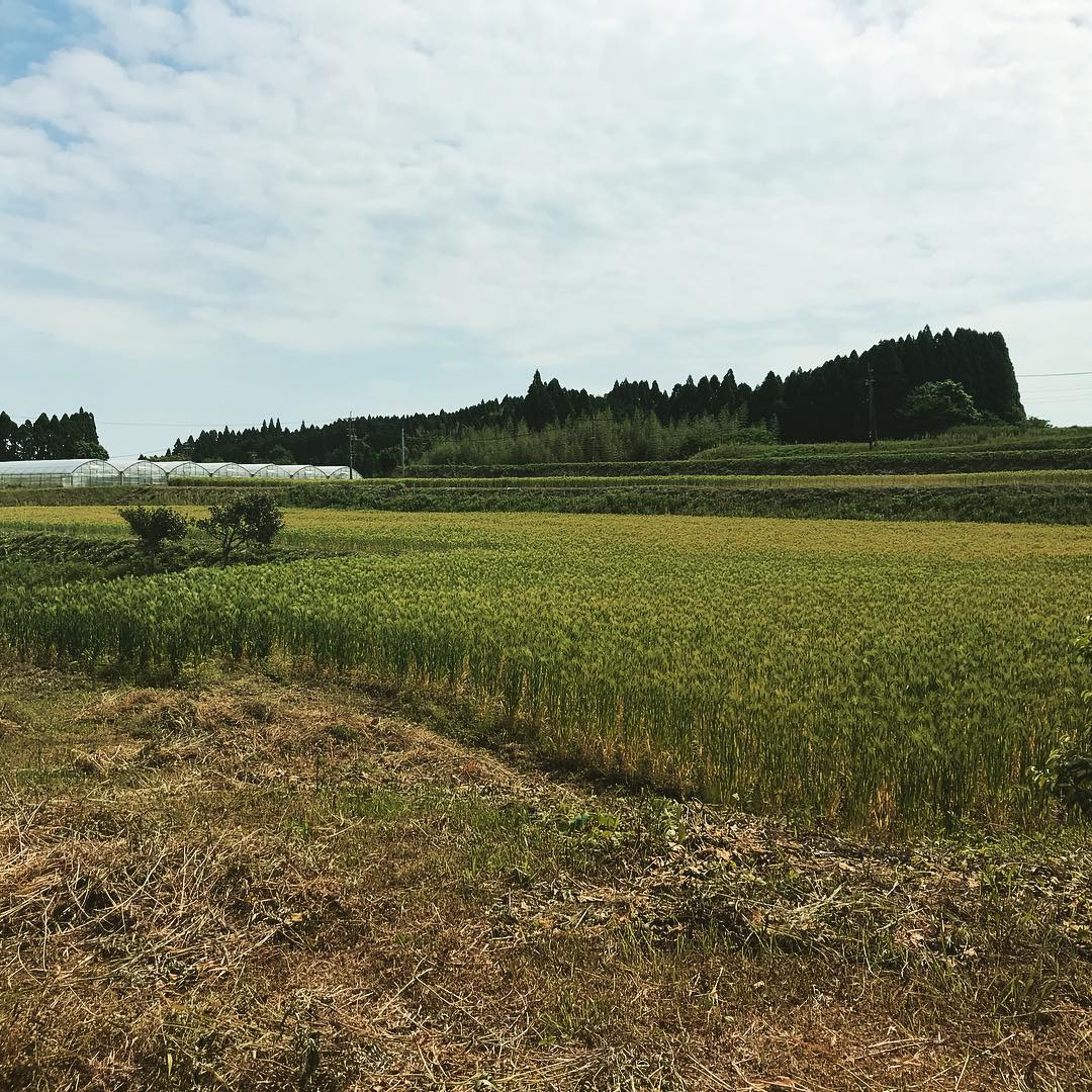 黄金の麦畑が見頃を迎えています。連休中、どうぞのんびり遊びにいらしてください。 広大な草刈りもようやく最終局面に。真ん中の法面を残すのみとなりました。 写真には収まらないけれど、これと同じだけの面積が映っていません^_^ #麦畑 #畑の風景