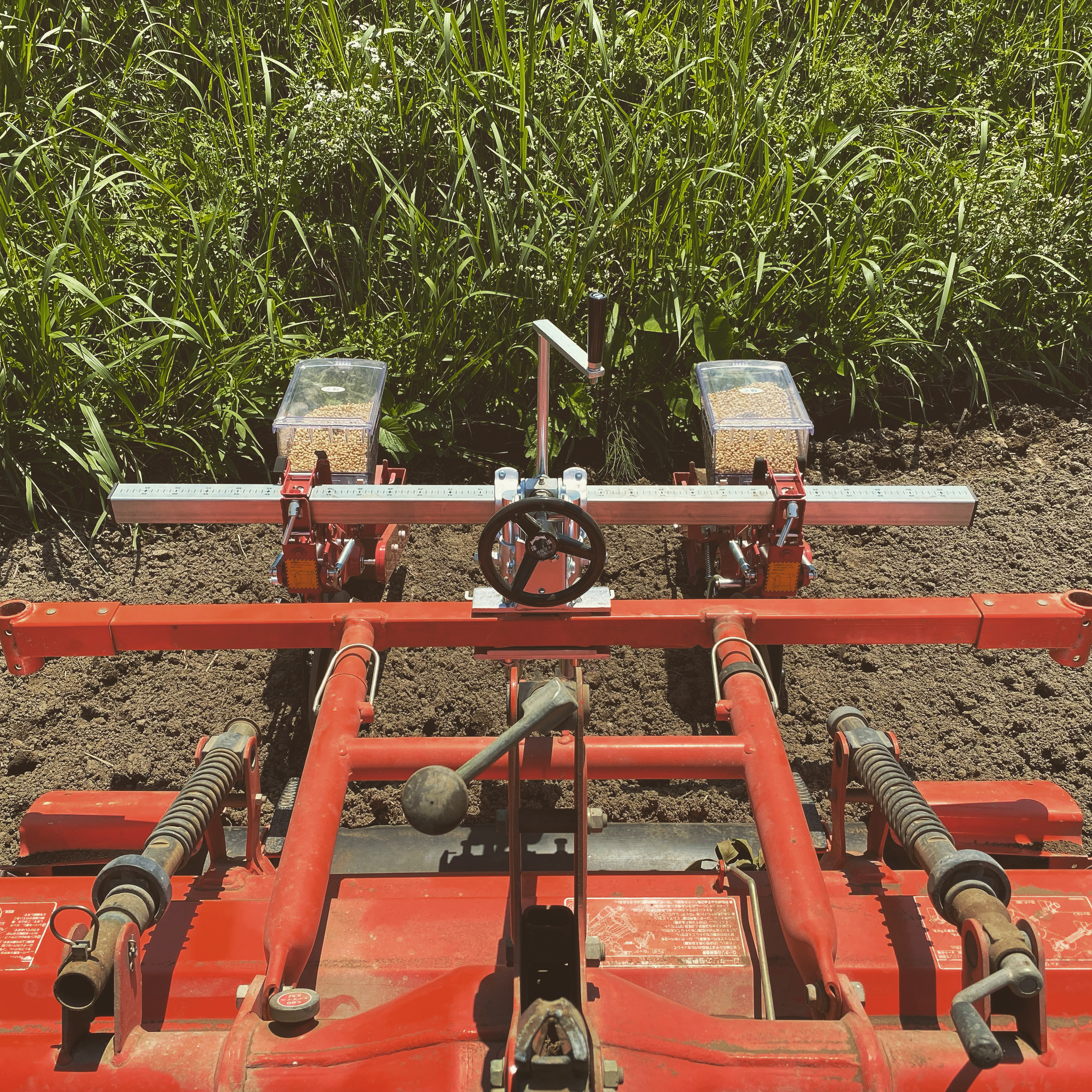 というわけで、ついにこの種まき機を導入したのです。そしたら、いつも1日かけてしていた面積がなんと2時間で終了。チーン
