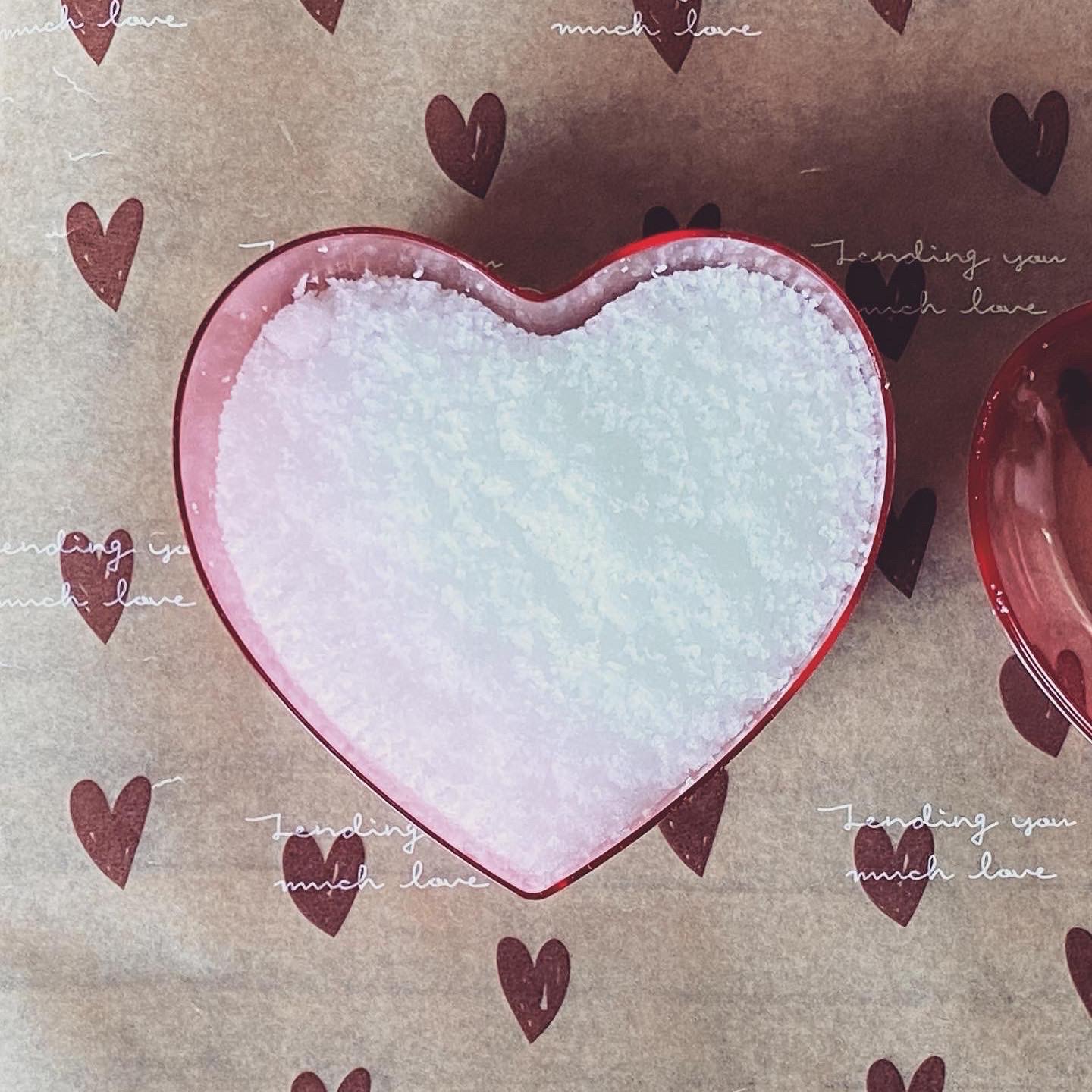 ハート型の容器に入っているのは・・・なんと沖の潮!雪のように真っ白でキラキラしていて、まっさらな愛を表現しているようです(・・と書いてて笑ってしまいますが)。