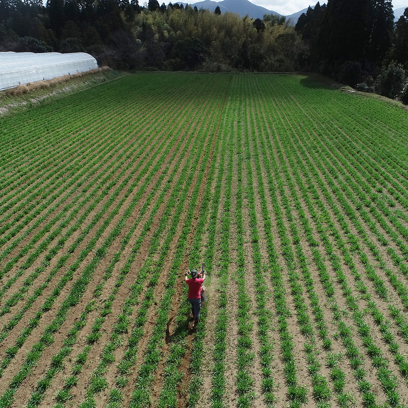 この写真はカメラマンさんがドローンで撮ってくれたもの。ちょっと上から撮るだけでこんなに面積が伝わるのかと思ったし、なにより自分でもこんなに広いのか!と驚きました。