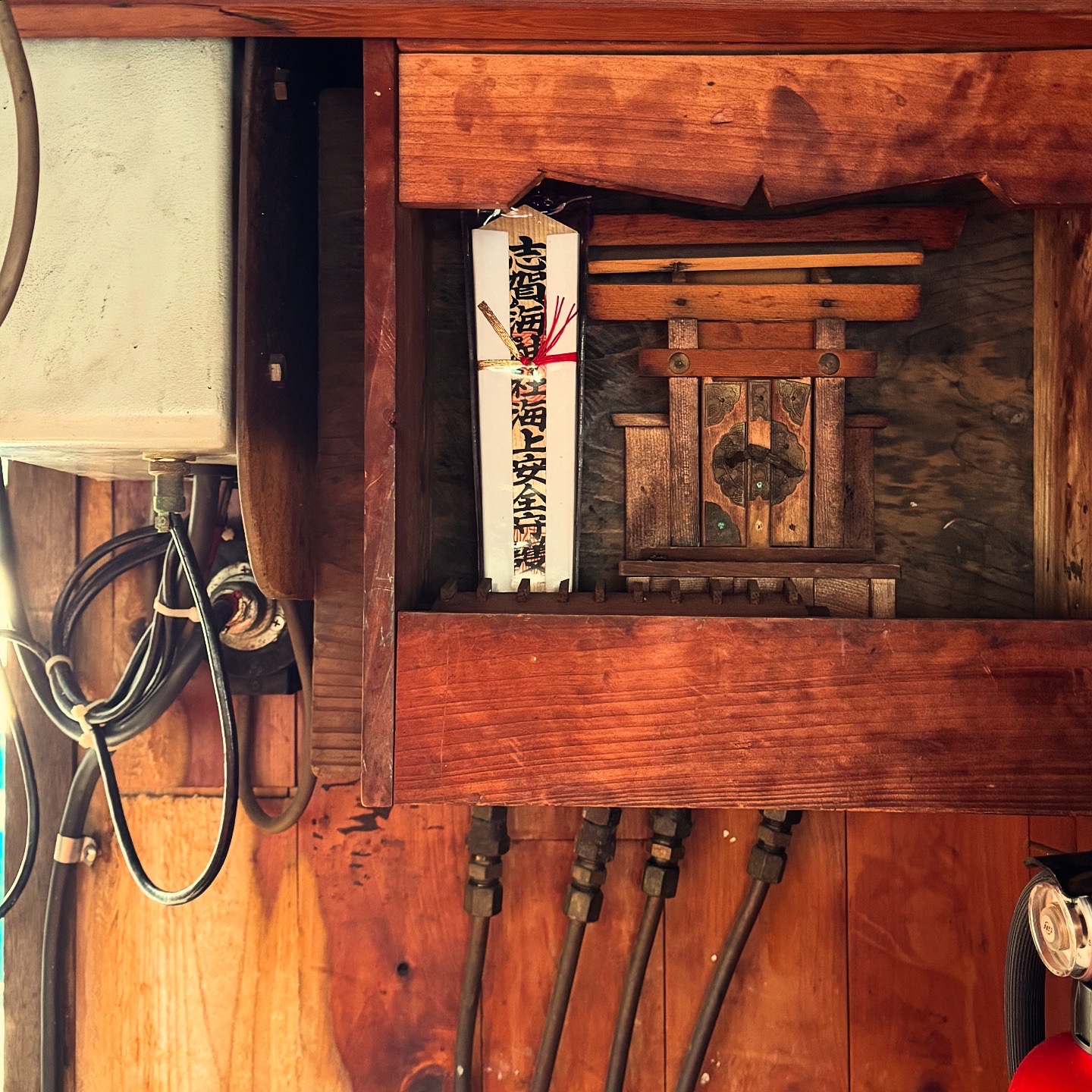海上安全のお札を船室の小さな神棚に飾りました。丸い月明かりの中、穏やかな海へ向かって2026年のここくは静かにはじまりました。