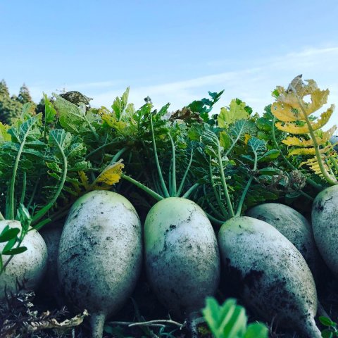 在来種の米良大根は身が締まっていて糖度が普通の大根よりも二度高く、辛味も強いのが特徴でとても美味しい大根。