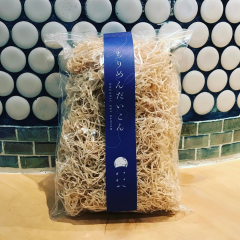 宮崎に伝わる、糖度が普通の大根よりも2度高いと言われる米良(めら)大根を、丁寧に手作業で「超極細」にして天日干しした一品。