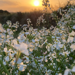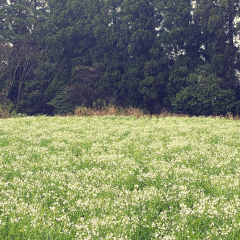 この数日で一気に草が勢いづき、近くの大根畑は満開を迎えようとしています。