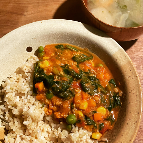 今日は時間なかったのでトマト缶を使って超手抜き味噌カレー。すぐできるし胃に優しいので時間ない時によく使う手です^ ^ ストーリーにあげてみたのでぜひお試しくださいませ。ここにむかし麦茶の出涸らしがあればもっとよかったと今後悔中(苦笑 お味噌は火を止めてから混ぜるのが麦味噌の香りと酵素を活かすことになります。 むかし麦茶の出涸らしは小分けで冷凍しておくと便利ですよ! 我が家はカレーでも味噌汁がつきます。 #カレー #手抜き料理 #味噌カレー #麦味噌 #ほうれん草 #いただきもの #規格外トマト #トマト缶 #ミックスベジタブル #カレースパイス #ごぶづき米