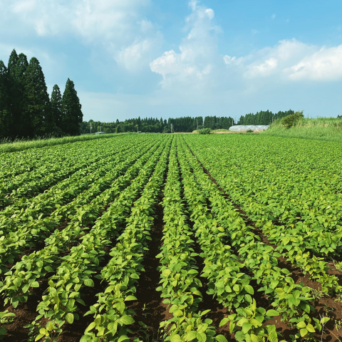 2週間前に中耕の撮影をしていただいた大豆畑。ぜひ前の投稿と見比べてみてください。この成長の早いこと!
