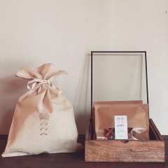 それを記念して、椎葉大麦ワッフルが4つ入ったお得な巾着ギフトの登場です。