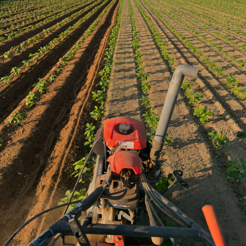 ここくも無事に大豆の種まきが終わり、スクスクと育つ大豆の間を耕す「中耕」作業も、怖いくらい順調に全て終わりました。