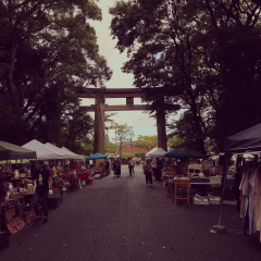 来月末に出店させていただく、 @tamahokoさん主催の風土市 @fuudoichiのフライヤー、護国神社蚤の市の会場で一番にゲットしました^ ^