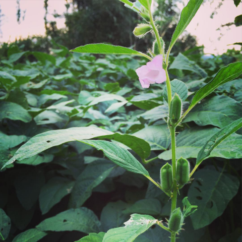 こちらご紹介します。黒ゴマさんです。昨年育てた時にこぼれた種がまだ生きてたんですね。